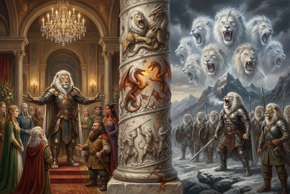 - 狮王之怒(主动):消耗 3 颗已觉醒头颅(下次长休前无法使用其能力。此前已在战斗中使用过的头颅为休眠状态,不可被选定),释放一次上古狮啸:30 尺内所有单位 耳聋 +震慑 1 轮(体质豁免抵抗),失败承受(头颅 - 1)D6 对龙类追加(头颅 - 1)D4 心灵伤害