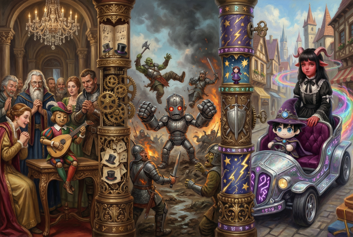 | 种族特点 | 起源未知,无法成战士 / 魔法师,专属职业“流银护卫”,是冒险团热门种族,常依附他人生存 |