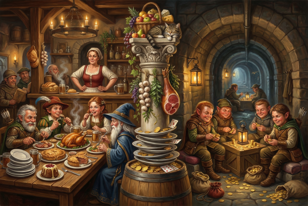 - 贪噬进化:身上每持有 2 白金币(至少持有一天),在开局时选择物防 or 魔防,战斗时获得 1 点防御加值(上限 = 等级 ×2)。若队伍中有人私藏超过 50% 当次模组获得财富,触发 “贪婪暴走”(无差别攻击最近生物,持续至财富被分配,或九头狮人倒地)